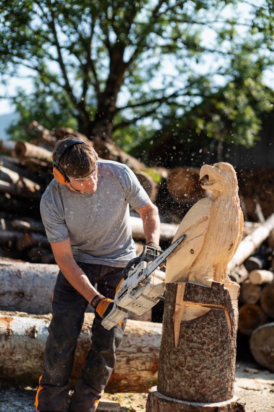V naših navodilih boste videli, kako z motorno žago izdelate leseno figuro. Čeprav se koraki posameznih figur med seboj razlikujejo, boste vseeno spoznali osnovni način dela. Pa začnimo!