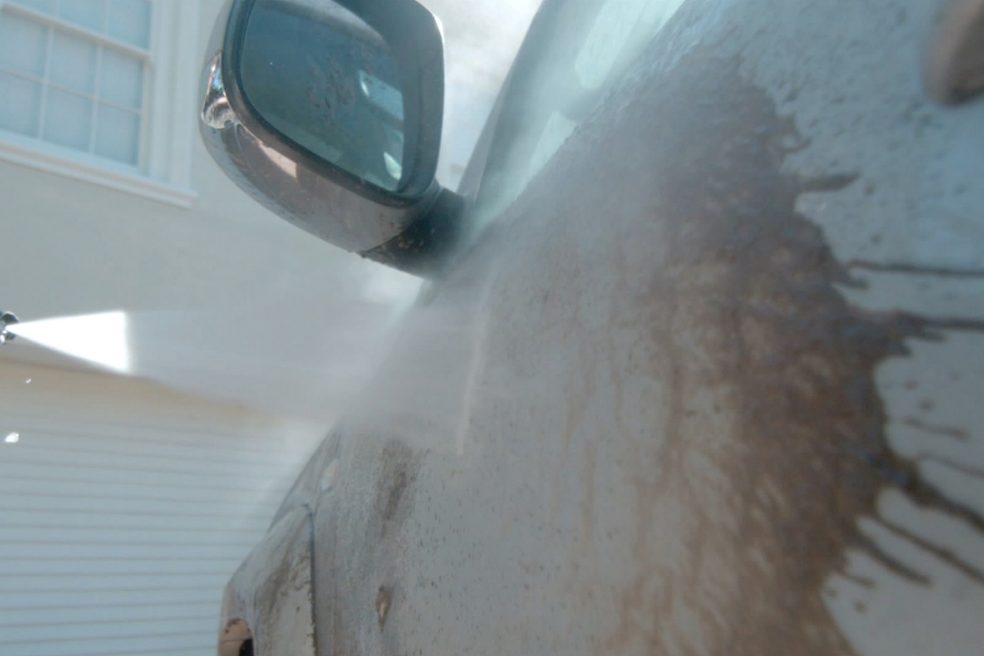 Ko avtomobil čistite z visokotlačnim čistilcem, zagotovite, da curek vode prši na površino pod zelo ostrim kotom (s strani), z nizkim pritiskom in zadostno razdaljo (vsaj 25 cm) od vozila. Če pritisk ne zadostuje za odstranitev umazanije, ga lahko postopoma in počasi povečujete. Pazite, saj lahko previsok pritisk (več kot 200 barov) poškoduje lak.