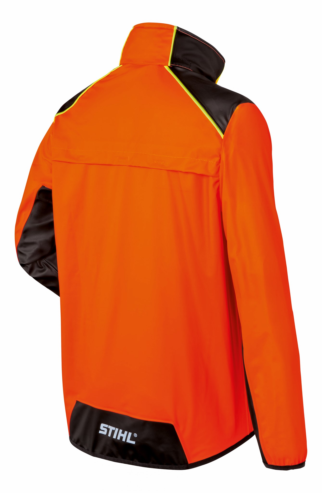 Iz vodotesnega, elastičnega in trpežnega materiala. Visok delež oranžne signalne barve. Vodni stolpec: ≥ 5.000 mm. Zračen zaradi prezračevalnih odprtin na rokavih ter zračen sprednji in zadnji del. Zložljiva kapuca v ovratniku. Vrhnji material: 100 % poliester, prevleka: 100 % poliuretan.