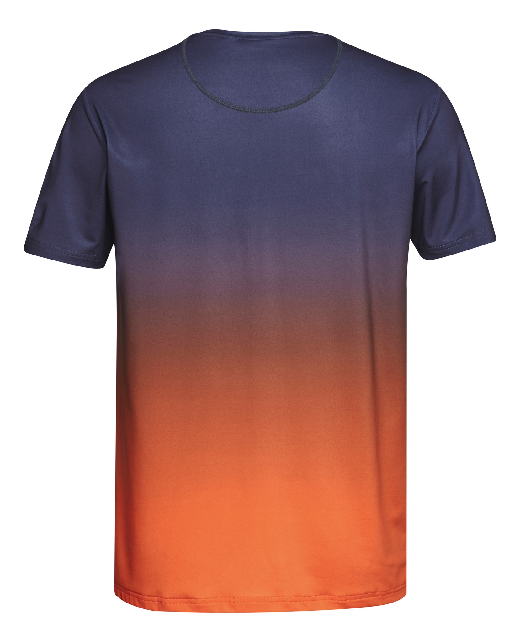 Ohlapna in zračna funkcijska majica iz 86% poliestra in 14% elastana, z barvnim prelivanjem od sive do oranžne, je idealna spremljevalka za vse športe.