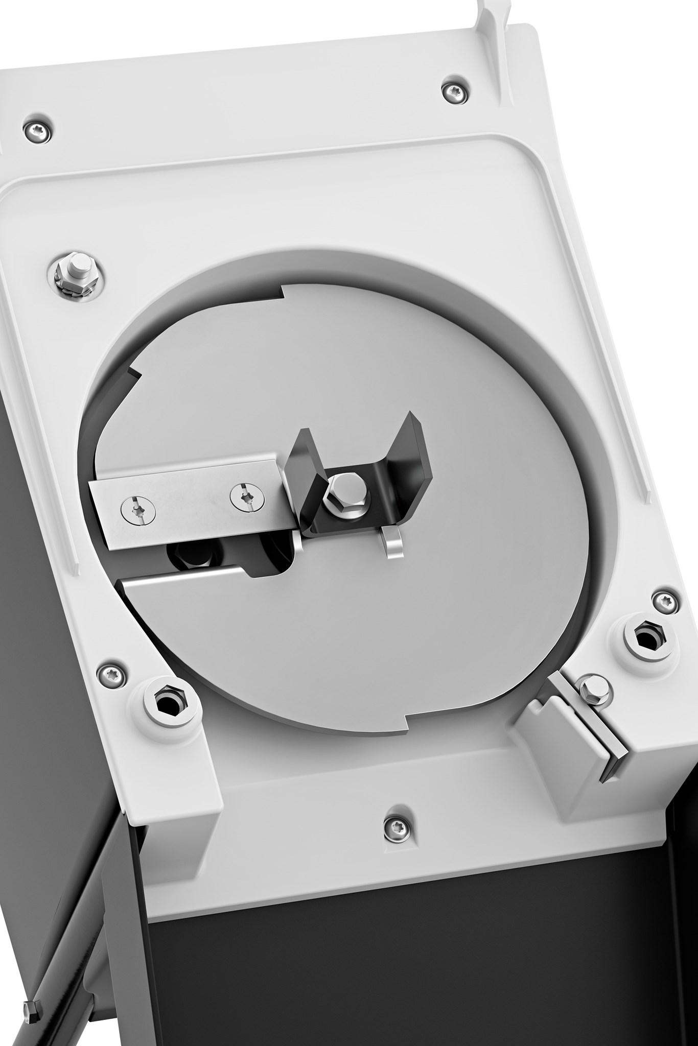 Z elektromagnetno varnostno zaporo se prepreči samodejni zagon vrtnega drobilnika – na primer po vzdrževalnih delih ali zamenjavi noža. Varnostno stikalo je integrirano v odpiralni mehanizem drobilnikov STIHL. Takoj ko odprete pritrdilne vijake naprave, se varnostno stikalo sproži in električni tok se prekine.