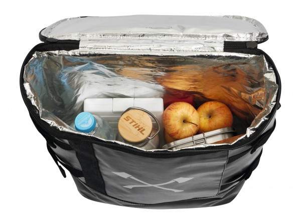 Želite prijeten poletni piknik? S hladilno torbo - nahrbtnikom TIMBERSPORTS® ostanejo hrana in pijača sveži in osvežilni tudi pri visokih temperaturah. Nahrbtnik je v športnem dizajnu. Okrašen je z značilnimi sekirami in logotipom TIMBERSPORTS® ter ima zadrgo v obliki ročaja za zagon STIHL. Hladilni nahrbtnik je izdelan iz vodoodbojnega materiala. Enostaven za brisanje in čiščenje.