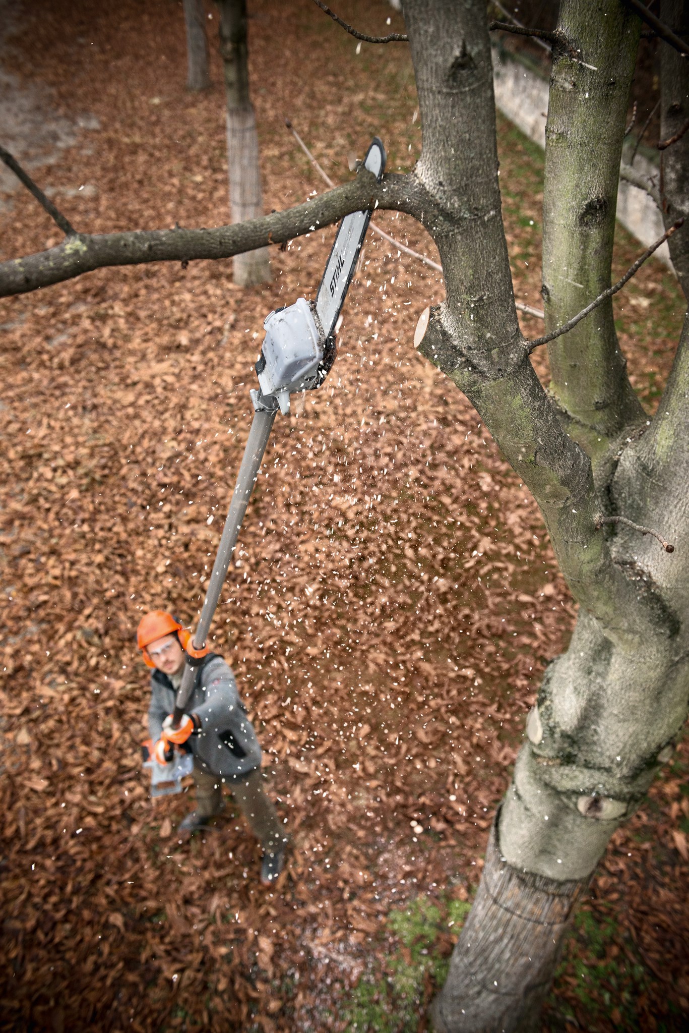 Zahvaljujoč lahkemu in robustnemu magnezijevemu prenosu lahko delate z manj napora v daljšem časovnem intervalu. S STIHL HT 135 lahko upravljate varno in udobno, saj so vsi elementi krmiljenja motorja integrirani v enoročnem večnamenskem ročaju. Profesionalna teleskopska gred je še posebej toga in jo je zaradi hitre nastavitve mogoče enostavno nastaviti na različne delovne višine ali umakniti za transport na koncu vašega dela. Obvejevalnik STIHL HT 135 tako doseže skupno dolžino od 270 cm do 390 cm. Brez težav lahko porežete veje do 5 m visoko.