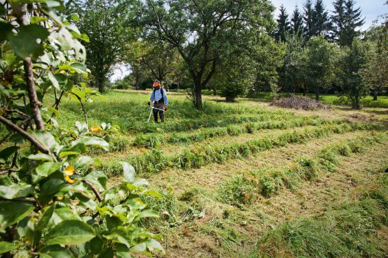 Z metodo prog boste najlažje delali na strmini: najprej pokosite eno progo vzporedno s strmino in pojdite nazaj po pokošeni progi. Nato pokosite naslednjo progo nad prejšnjo progo. Tudi tukaj obležijo ostanki košnje na pokošeni površini.