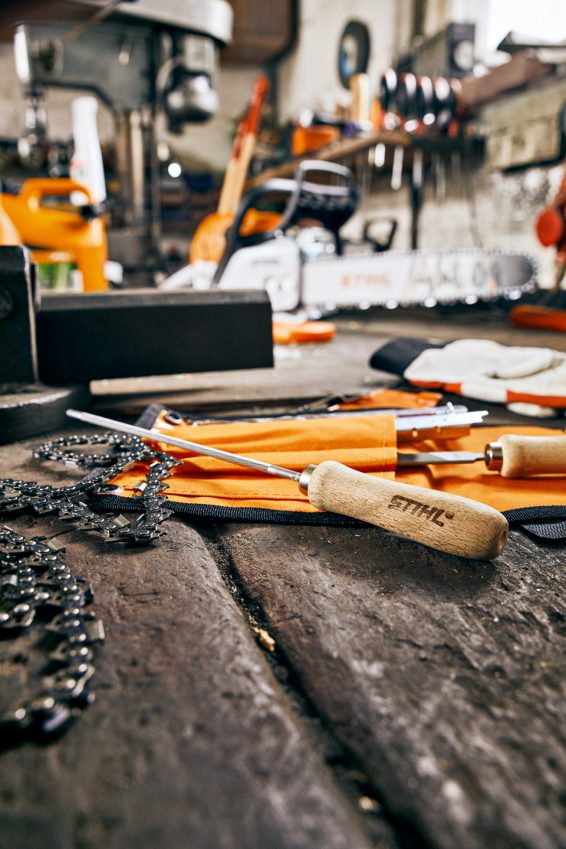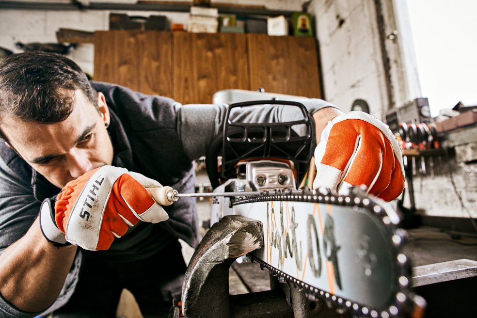 Preden začnete z ostrenjem verige, je treba storiti naslednje, da zagotovite varno delo. Poskrbite, da je delovno mesto varno. Potrebujete dovolj prostora in primerno orodje. Priporočamo uporabo rokavic iz trpežnega materiala. Tako boste preprečili poškodbe zaradi ostre verige.