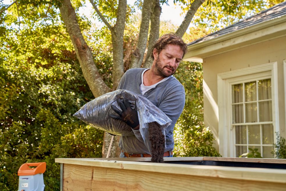 Za vrhnji sloj, v katerega boste potem zasadili rastline, uporabite zrel kompost ali zemljo za lončnice, pomešano z vrtno zemljo. Tako, zdaj je vaša visoka greda končana.