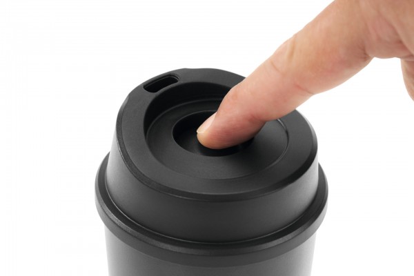 Črn lonček za kavo z vtisnjenimi sekirami in logotipom STIHL TIMBERSPORTS®. Ta visokokakovosten lonček je izdelan iz robustnega nerjavečega jekla in ohranja kavo toplo dolgo časa. Praktičen pokrov z navojnem preprečuje, da bi se pijača nenamerno razlila. Odprtino za pitje lahko zaprete s tlačnim pokrovčkom.