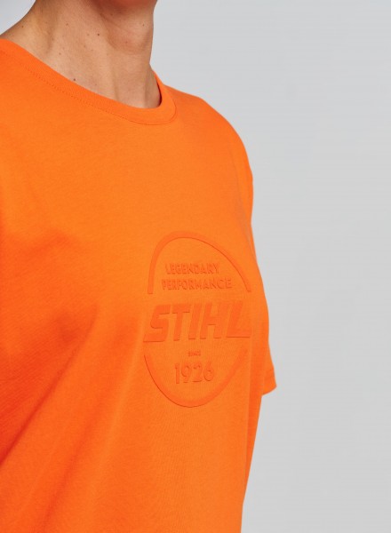 Majica z okroglim ovratnikom iz visokokakovostnega džersija, običajnega kroja z natisom velikega 3D logotipa v značilni oranžni barvi. Etiketa z logotipom na notranji strani dopolnjuje dizajn.
