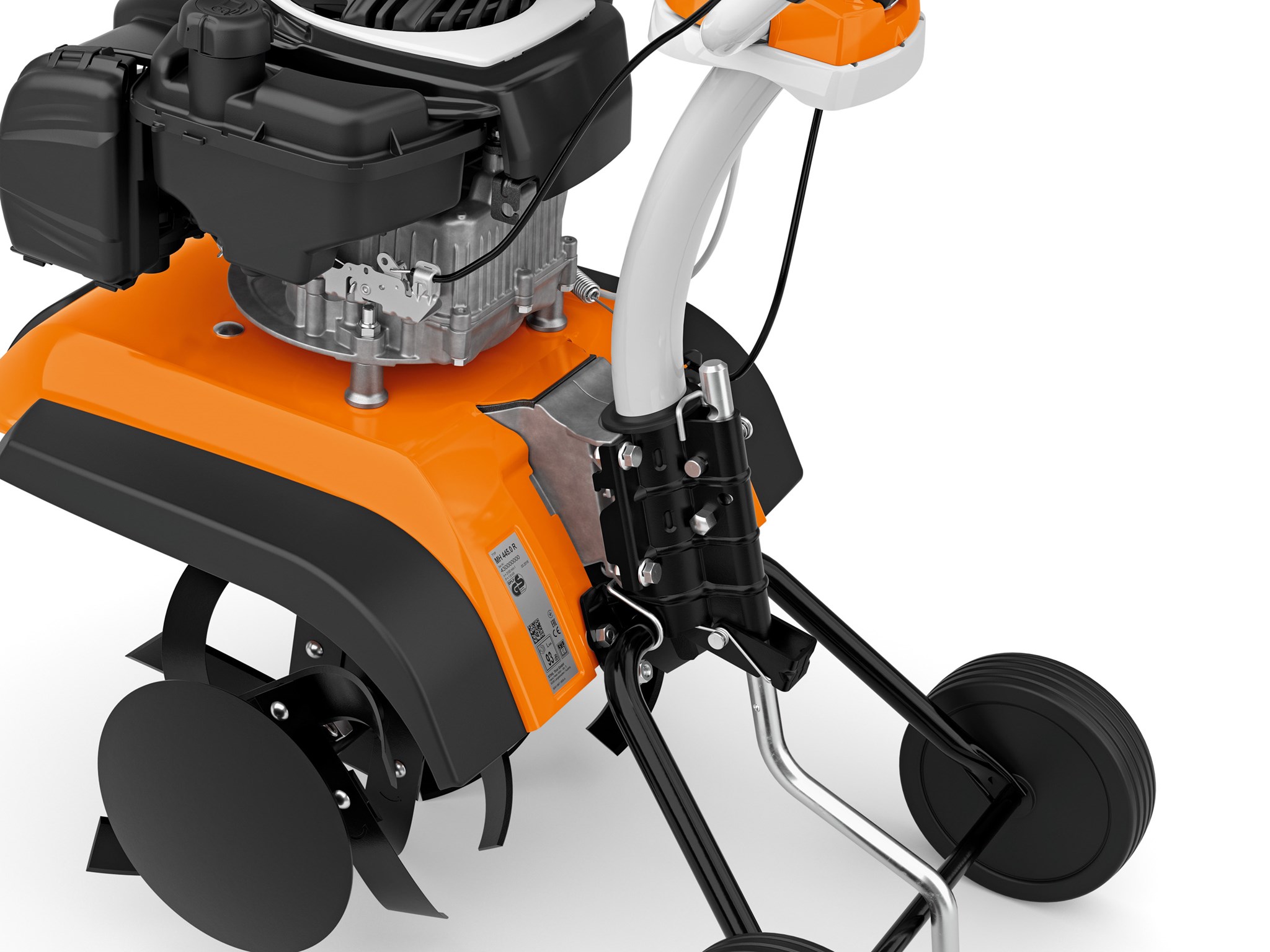 Motorni kultivatorji STIHL MH 445 R se udobno vodijo celo pri okopavanju tal v prostorsko omejenih okoliščinah. Poleg kompaktne zasnove in uravnoteženega težišča vas tudi vzvratna prestava podpira pri preprostem vodenju in spreminjanju smeri. Moč zmogljivega bencinskega motorja zagotavlja nenaporno okopavanje tal. Za optimalno zadiranje v tla in mešanje zemlje imajo noži za okopavanje motornih kultivatorjev MH 445 R posebno obliko. Na standardni širini 45 cm, ki se lahko po želji spremeni, zagotavljajo rezila učinkovito pogrezanje v zemljo. Zavorna zagozda, ki se lahko nastavlja v treh stopnjah, poskrbi za natančno vodenje naprav. Integriran sistem proti vibracijam zmanjša vibracije motorja in poskrbi za čim večjo razbremenitev uporabnika. Ergonomsko oblikovano krmilo se individualno prilagodi telesni višini. Z roko ali nogo vodite podvozje motornega kultivatorja, s palcem dodajate plin. Za čiščenje in montažo lahko motorne kultivatorje STIHL MH 445 R nagnete na kolesa za transportiranje, tako da lažje dosežete njihove nože.