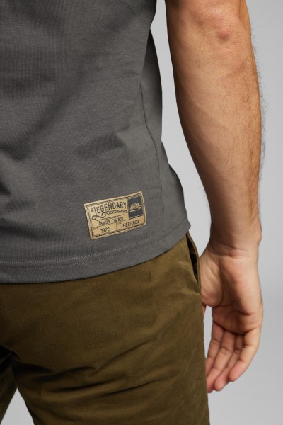 Legendarni potisk: Ta majica prikazuje STIHL CONTRA, prvo motorno žago STIHL za enega človeka, ki je od leta 1959 spremenila delo v gozdu. Moška majica z okroglim ovratnikom je sive barve. Majhen našitek STIHL COLLECTION zadaj spodaj desno. 100 % poliester
