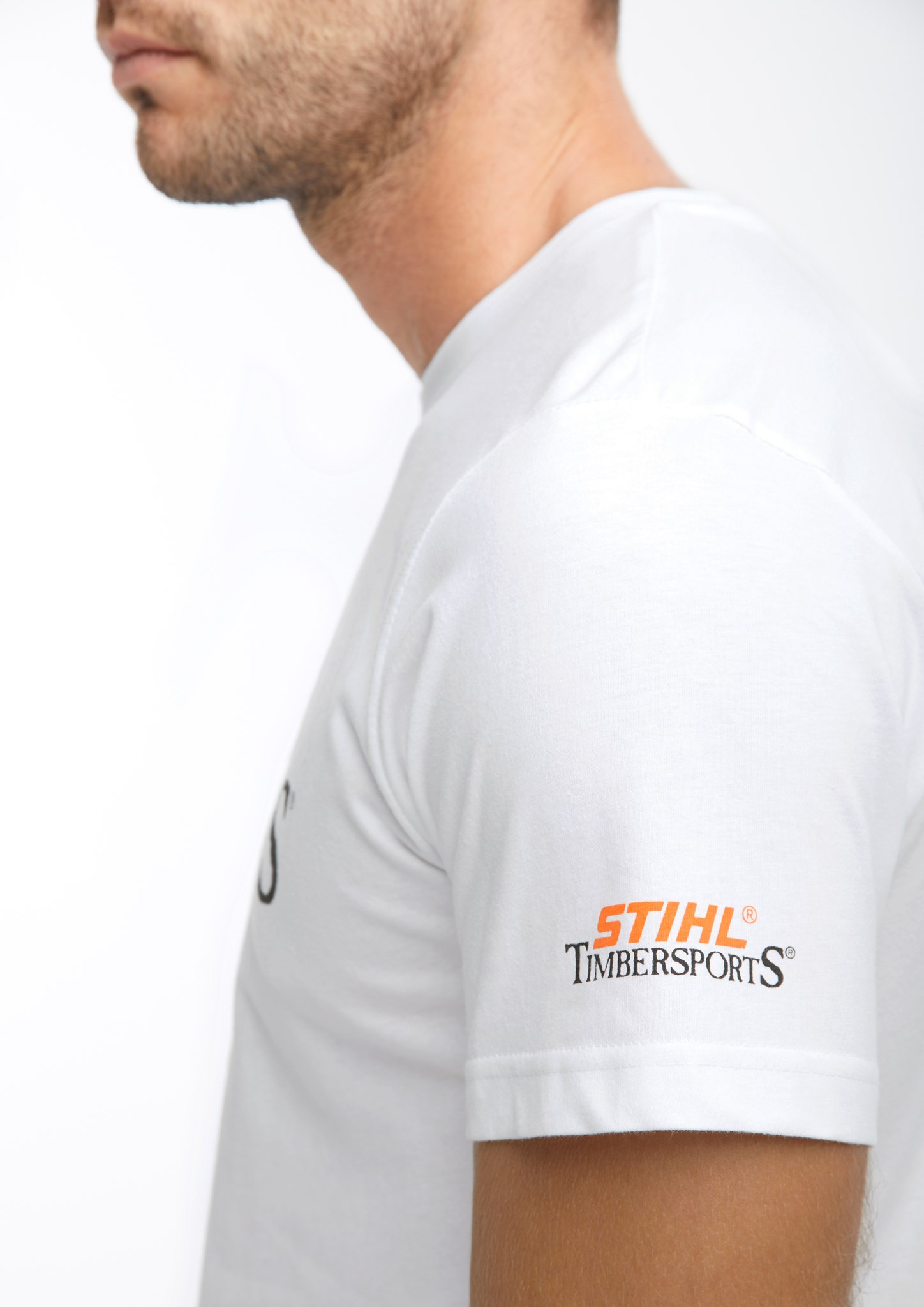 Majica z napisom "STIHL TIMBERSPORTS" za vse navdušence tega športnega tekmovanja. Narejena je iz čistega bombaža v ležernem kroju in ima okrogel rebrast ovratnik, za več udobja pri nošenju.