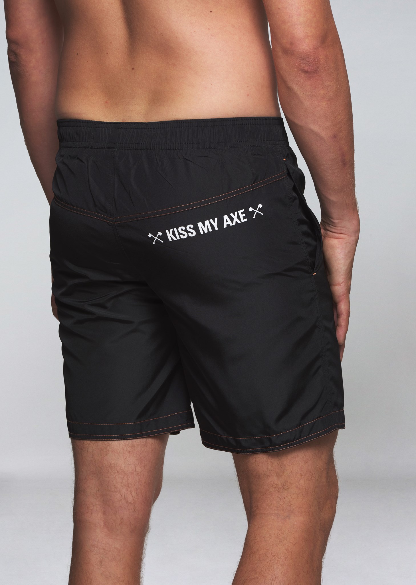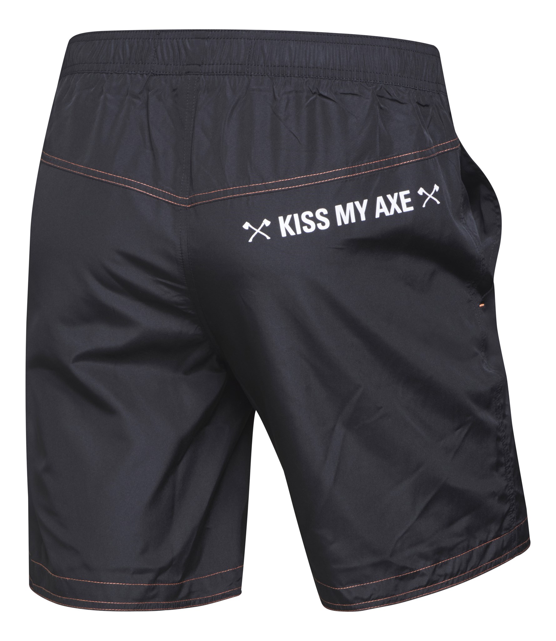 Preprosta barvna zasnova za tiste, ki pri kopanju ne želijo izstopati. Klasične črne barve. Napis "KISS MY AXE" na zadnji strani. Oranžni okrasni šivi in majhni prekrižani sekiri spodaj. Modna dolžina, nekoliko nad koleni. Elastični pas in vrvica za zatezanje. Mrežasta podloga preprečuje, da bi se hlače oprijemale nog.
