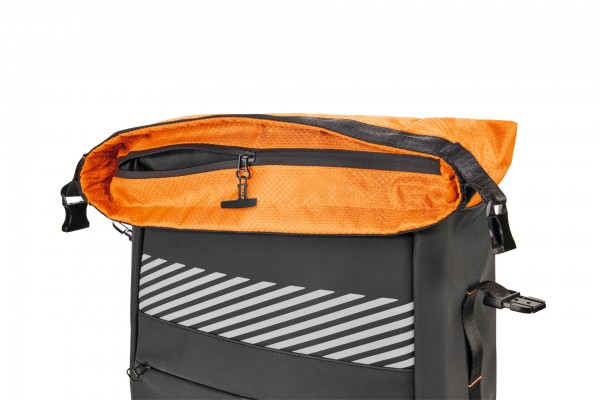 Nahrbtnik STIHL za ljubitelje! Črn in oranžen nahrbtnik STIHL z zapiranjem na rolo. Zunanji trak ponuja možnost pritrditve drugih manjših predmetov in oblačil. V notranjosti je prostor za prenašanje dokumentov, oblazinjen notranji žep za prenosnik in podobno. Nahrbtnik je vodoodbojen.