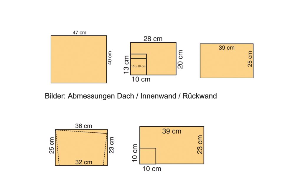 Na bodočih stranskih stenah označite poševnine. Zaradi teh poševnih stranic bo dež odtekel s strehe. Pri tem voda ne bo prišla v stik s stenami hiške in jih tudi ne bo zmočila. Poševne dele odrežite z enoročno akumulatorsko žago.