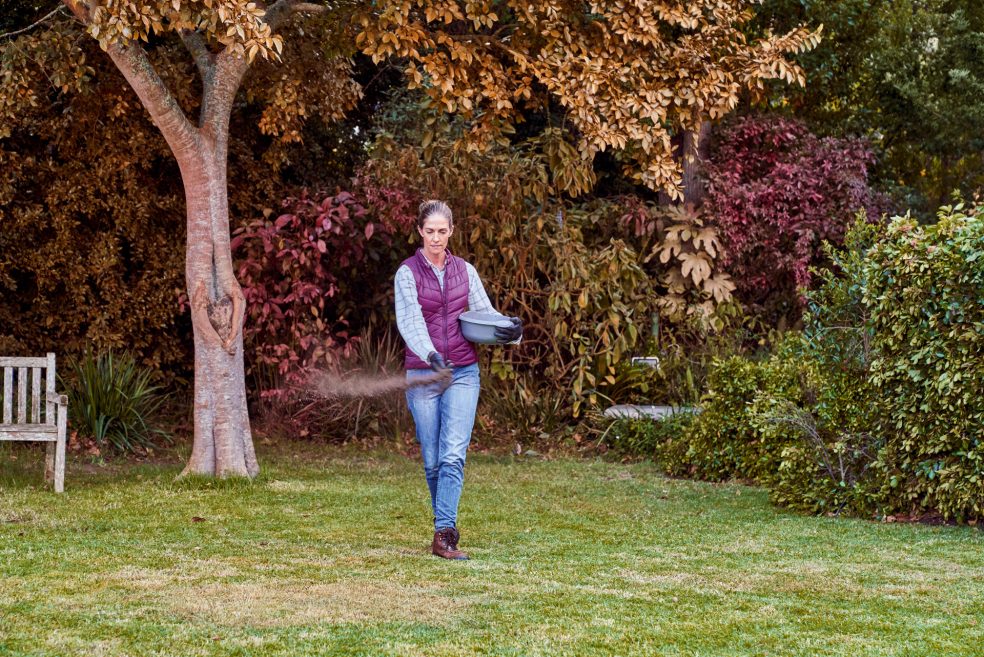 Če imate po zadnji košnji trate še veliko energije, se ponuja jesensko gnojenje. Pri tem si lahko pomagate z vozičkom za gnojenje. Z njim boste hranilne snovi enakomerno razporedili po celotni površini.