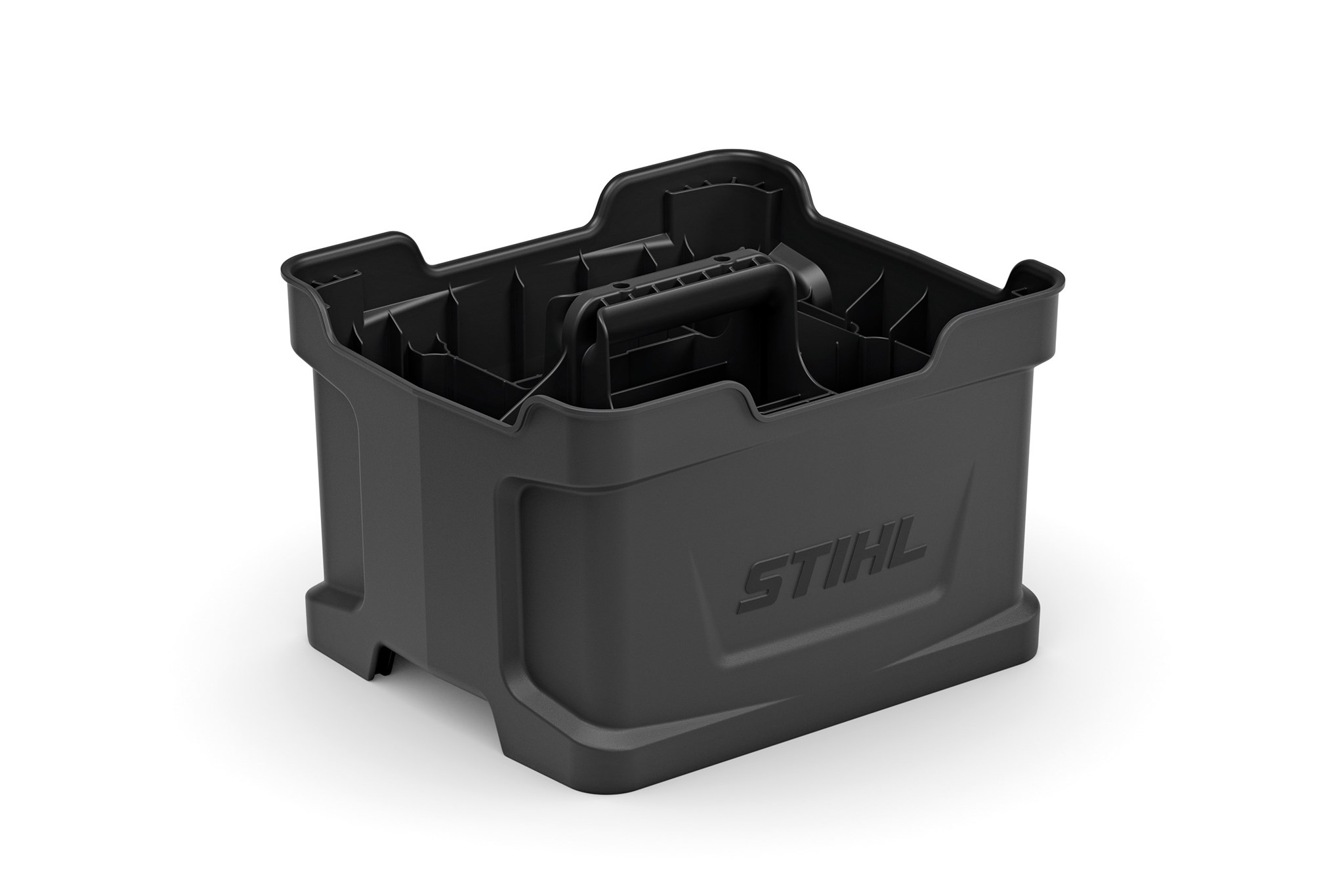 Z nosilcem baterij STIHL si profesionalni uporabniki zagotavljajo varen transport in prostorsko varčno shranjevanje do 6 baterij iz sistema STIHL AP. Zahvaljujoč ergonomskemu ročaju za prenašanje z eno roko lahko izjemno lahke plastične škatle in v njih shranjene baterije STIHL vedno nosite s seboj. 2 dodatni oprijemalni točki na spodnji strani omogočata lažje prenašanje z obema rokama. Pri prevozu v vozilu lahko enega na drugega zložite do 3 nosilce baterij STIHL.