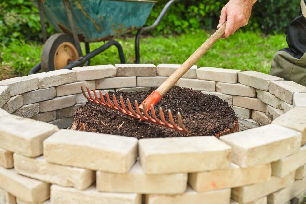Nasvet strokovnjaka STIHL: pri manjših površinah lahko zemljo presipate kar iz vreče, v kateri je bila kupljena. Pri večjih štorih si pomagajte s samokolnico.