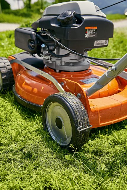 Električne kosilnice lahko preprosto obrnete in odložite na zgornjo stran ohišja. Pri bencinskih modelih to ni dovoljeno: da se prepreči izlitje motornega olja v zračni filter, je treba te s sprednje strani dvigniti za največ 45° ali pa jih vodoravno odložiti na dva stola, tako da lahko potem od spodaj dostopate do noža. Zračni filter mora biti v vseh položajih zgoraj!