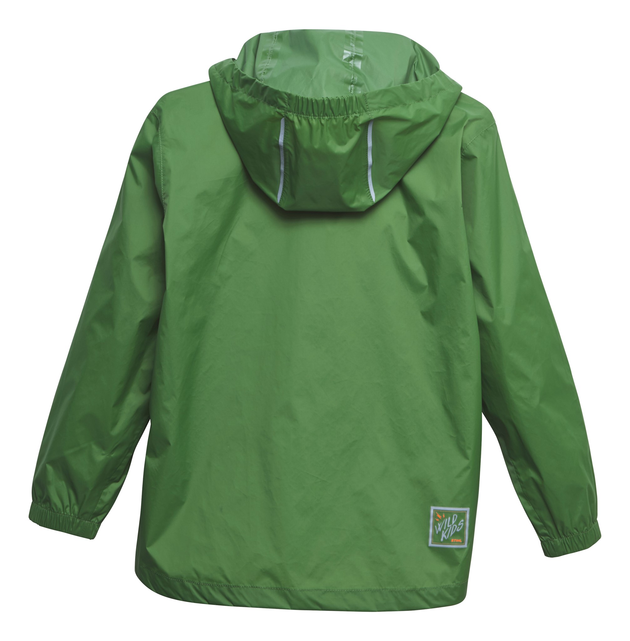 Brez strahu novim dogodivščinam na proti! Da otroci ostanejo suhi tudi pri nenadnih nalivih. Zeleni dežni jopič z oranžnimi zadrgami je praktičen in moden. Elastični zapestniki preprečujejo vdor vode na rokavih., kapuca, posebni šivi in visok ovratnik pa ščitijo od zgoraj. Dežni jopič lahko zložite v majhen paket.