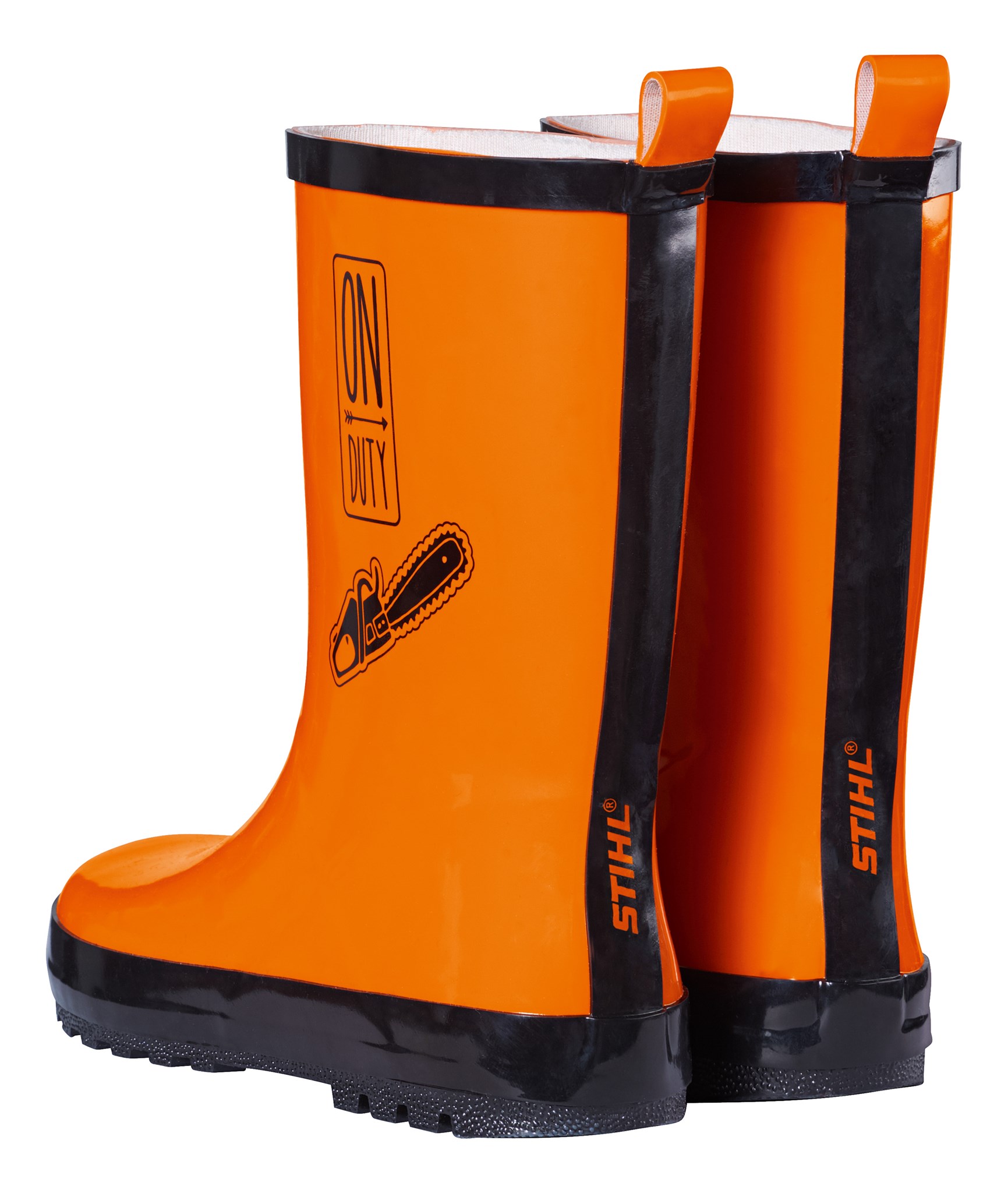 Otroci si bodo želeli, da bi deževalo: z gumijastimi škornji STIHL otroci ne bodo zmočili nog niti, ko bodo skakali v luže. Za to poskrbi nepremočljiv material iz 100% poliuretana. Mehak, barvno kontrastni gumijast podplat z nedrsečim profilom, zagotavlja najboljši oprijem tudi med plesom v dežju.
