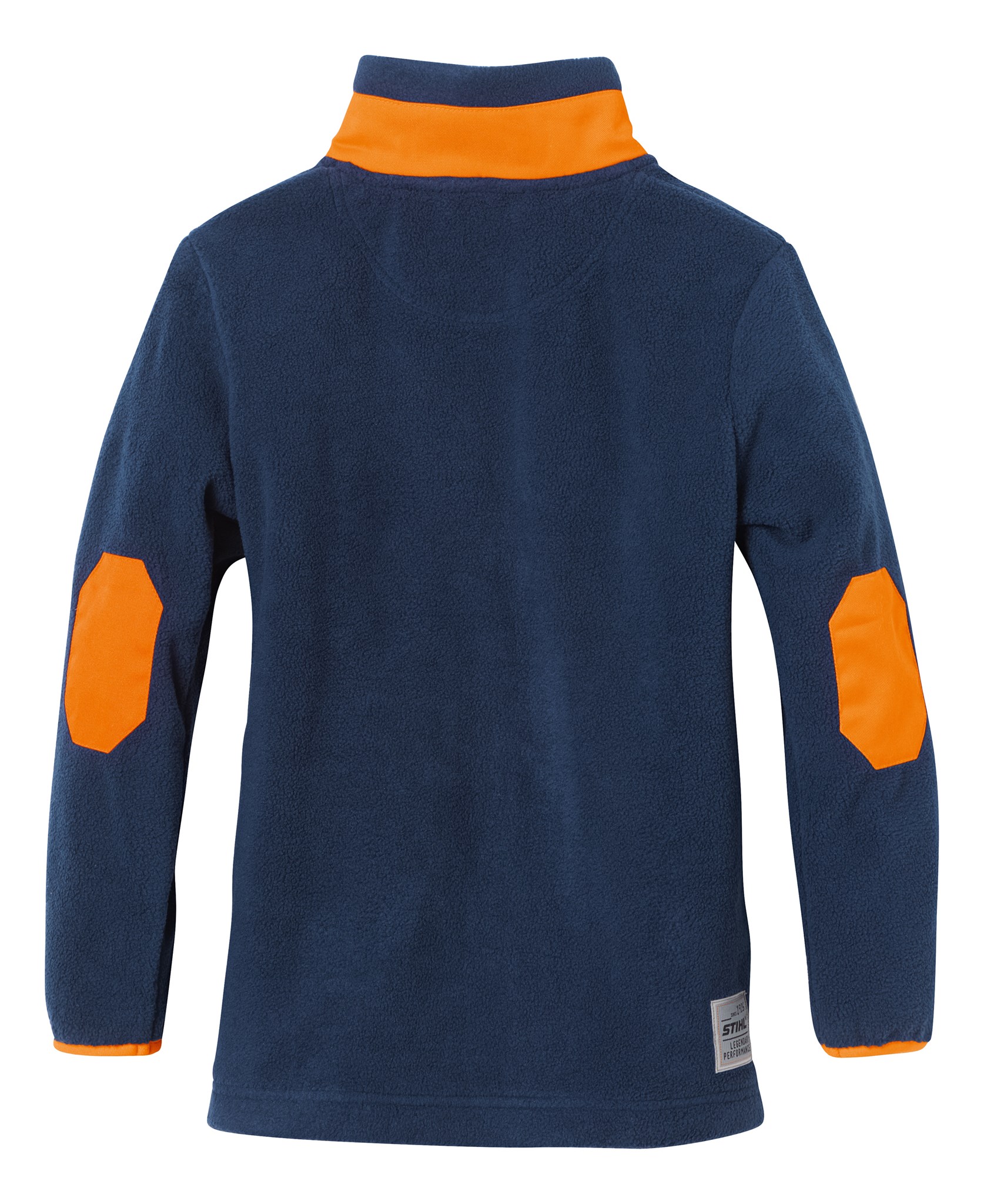 Kot nalašč za mlade divjake! Robustna flis jakna je kot nalašč za prehodno obdobje. Natisnjeni motiv "ON DUTY" in motorna žaga ter zaščita komolca v oranžni barvi STIHL dopolnjujejo obliko. Modre barve, 100% poliester, stoječ ovratnik, zadrga z zaščito za brado, dva stranska žepa in en naprsni žep z zadrgo.