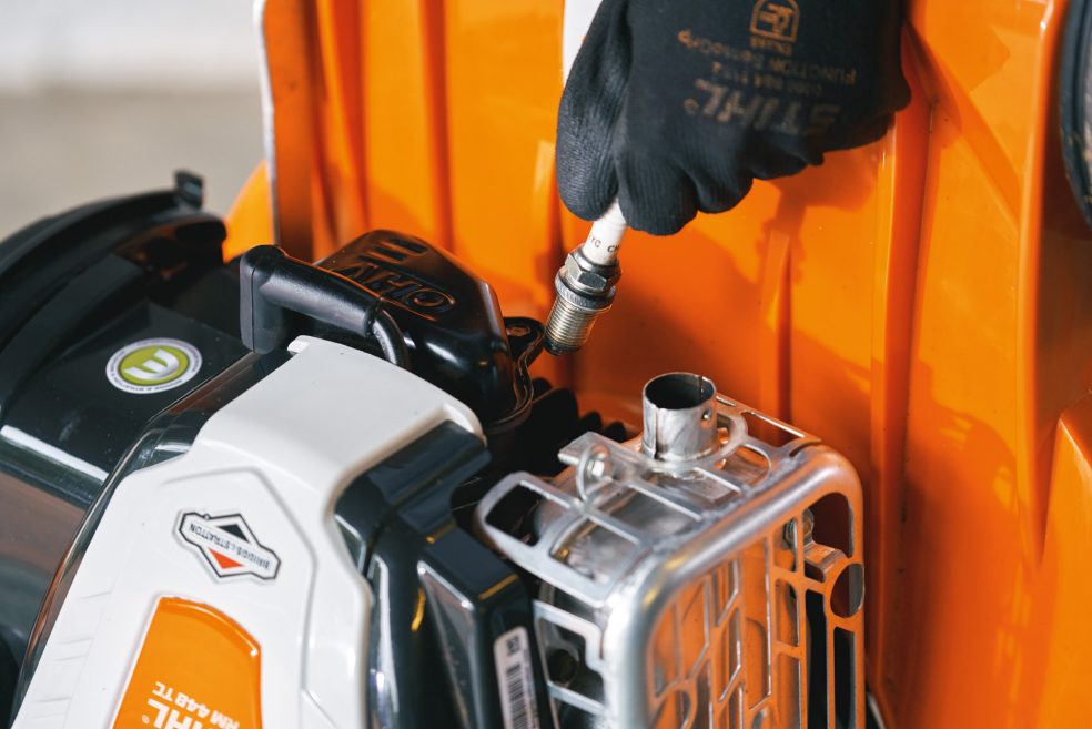 Odvijte vžigalno svečko in v motor skozi odprtino vžigalne svečke dolijte pribl. 3 cm3 motornega olja. Nato motor nekajkrat zavrtite brez vžigalne svečke, tako da povlečete za zagonsko vrvico.