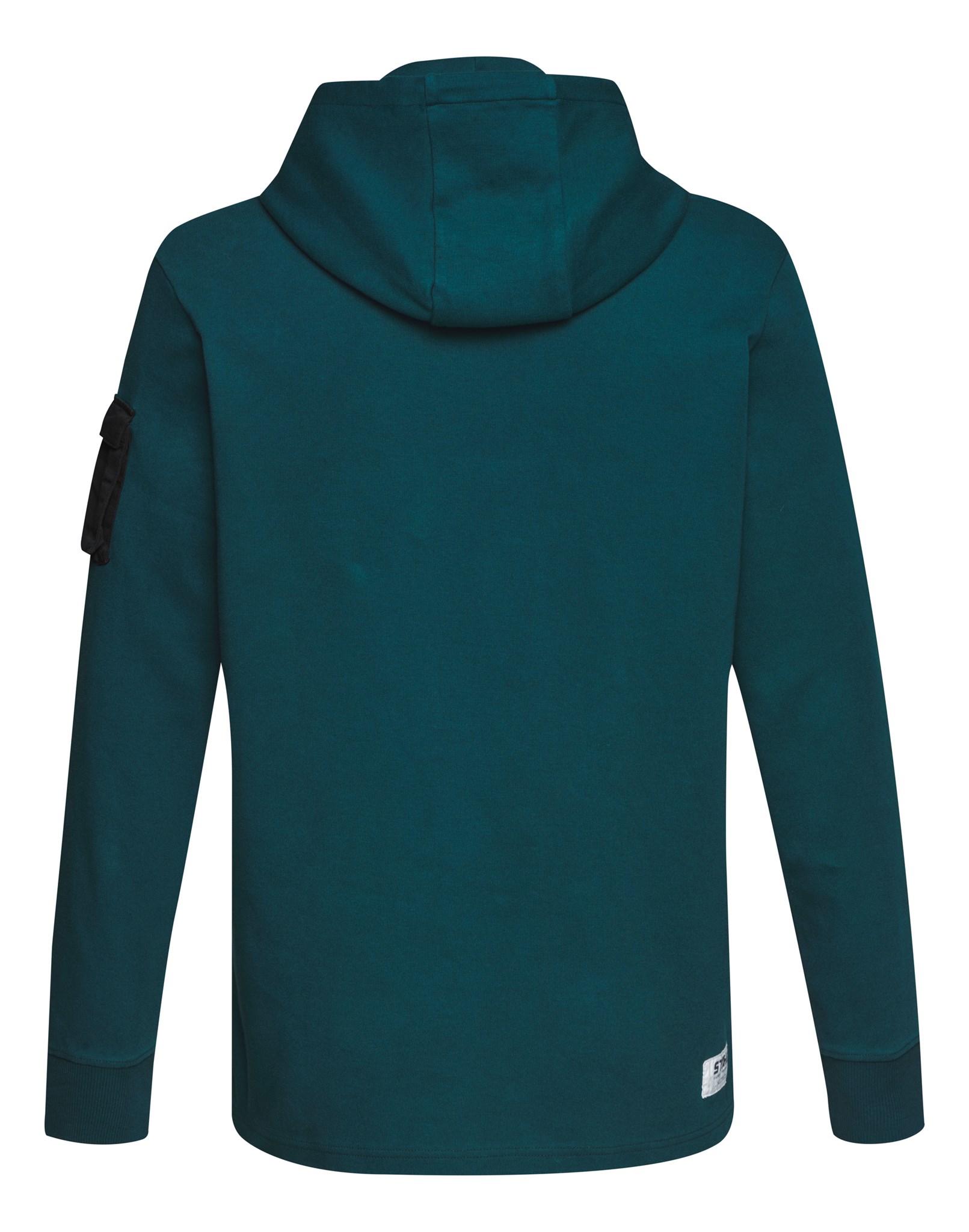 Odpravite se v mesto s tem sproščenim, lahkim puloverjem s kapuco v zeleni barvi. Z rebrastimi manšetami na rokavih, majhnim žepom na levem rokavu ter nepogrešljivo ikono motorne žage na prsih.