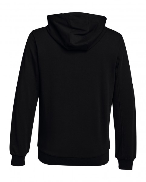 Enostaven črn pulover s kapuco in zadrgo, ki je v obliki STIHL ElastoStart. Obleci si majico, čez njo pulover, končano. Pulover ima kapuco, dva žepa na zadrgo in logotip STIHL kot rahlo dvignjen 3D tisk na prsih.