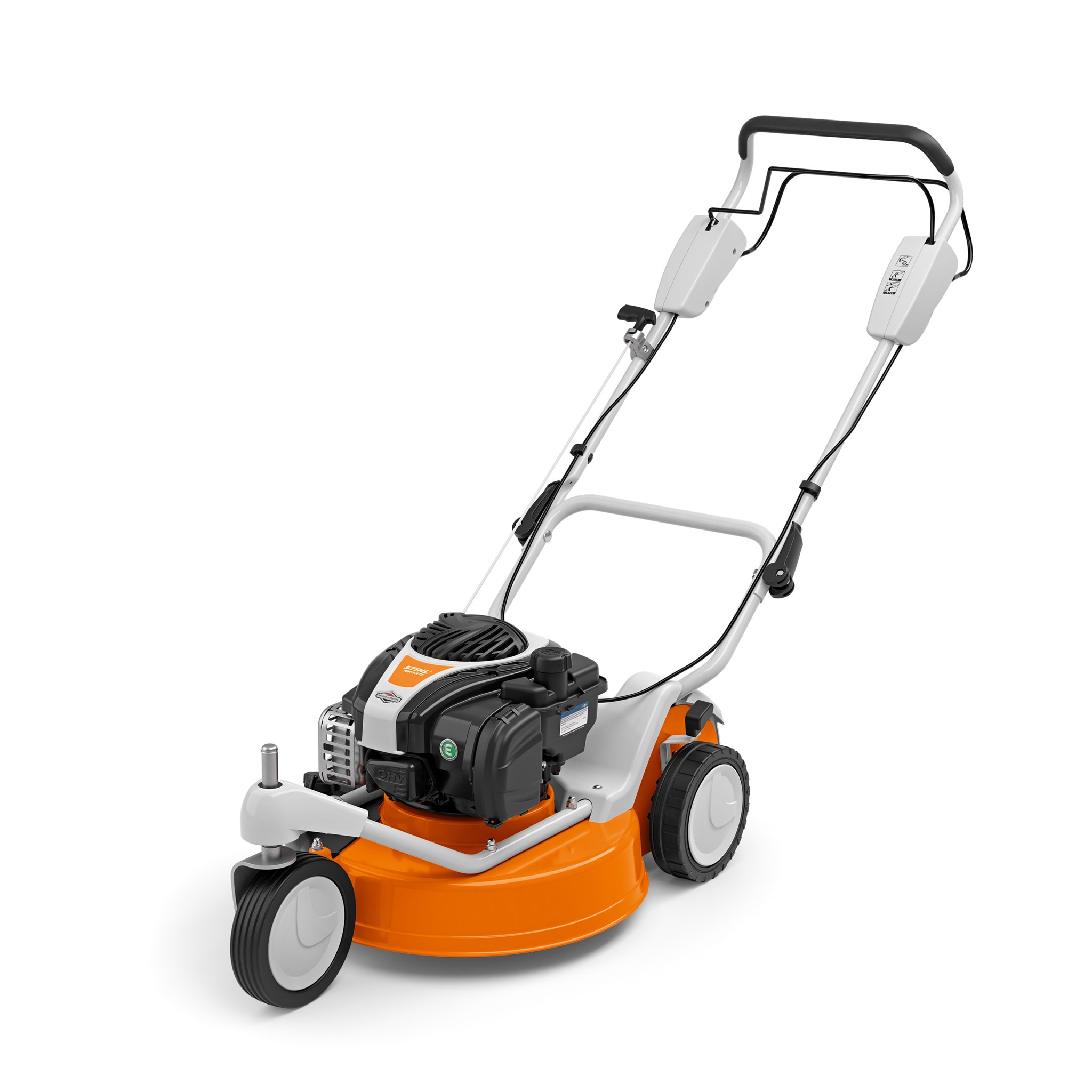 Bencinske kosilnice STIHL RM 3 RT prepričajo s svojo okretnostjo in širino košnje 48 cm ter so tako primerne za večje trate. Zaradi premišljene zasnove s tremi kolesi, pri čemer je sprednje kolo premično, boste brez težav kosili na zahtevnejšem terenu. Olajšana je namreč košnja okoli grmičevja in dreves ter na ozkih in zakotnih predelih trate. Pri tem lahko izbirate, ali boste bencinsko kosilnico uporabljali kot kosilnico s stranskim izmetom ali kot kosilnico za mulčenje. Za popoln rezultat poskrbi nož za košnjo, ki ga z nastavitvijo višine košnje v petih stopnjah prilagodite svojim željam. Pri transportiranju ali skladiščenju kosilnic STIHL RM 3 RT vam pomagajo hitri napenjalniki Quick-Fix in preprosto preklapljanje krmila.