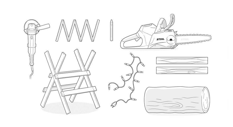 - Za noge z drevesno žago narežite les na dolžine pribl. 40 cm.