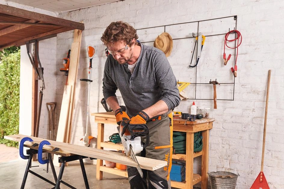 Delo z zmogljivimi napravami razveseljuje in omogoča, da pri tem prerastete samega sebe. Pri tem je dobro, če se lahko zanesete na učinkovita in varna zaščitna oblačila. Pri delu z enoročno akumulatorsko žago vedno nosite osebno zaščitno opremo. Sem spadajo npr. zaščitna očala, zaščitne rokavice ipd. Več podrobnosti preberite v navodilih za uporabo kupljenega izdelka. Pred prvo uporabo naprave se dobro seznanite z njenim delovanjem, poleg tega se pred vsakim delom prepričajte, da je naprava v brezhibnem stanju. Specializirani trgovec STIHL bo napravo za vas pripravil na prvo uporabo in vam svetoval glede zaščitnih oblačil, krojev in konfekcijskih številk, pri tem pa boste oblačila lahko v miru pomerili. Zapomnite si, da osebna zaščitna oprema ne more nadomestiti varne delovne tehnike.