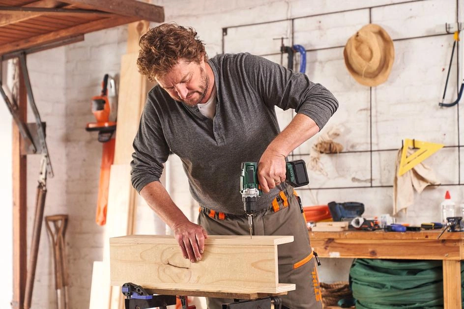 Izmerite deske za korita. Vsaka mora biti dolga 70 cm, dva čelna kosa vsakega korita pa naj bosta široka 18 cm in visoka 14,5 cm. Deske razžagajte z enoročno akumulatorsko žago STIHL GTA 26. Izmerite tudi deske za okvir in jih razžagajte na primer z akumulatorsko žago MSA 70.