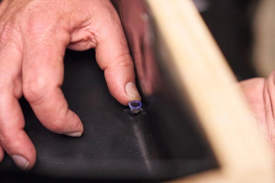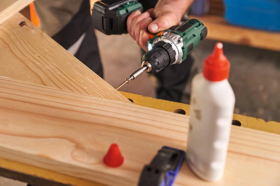 Deske privijačite skupaj in izvrtajte tri luknje za odtok vode v spodnjo desko nekje blizu roba.