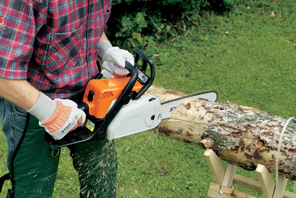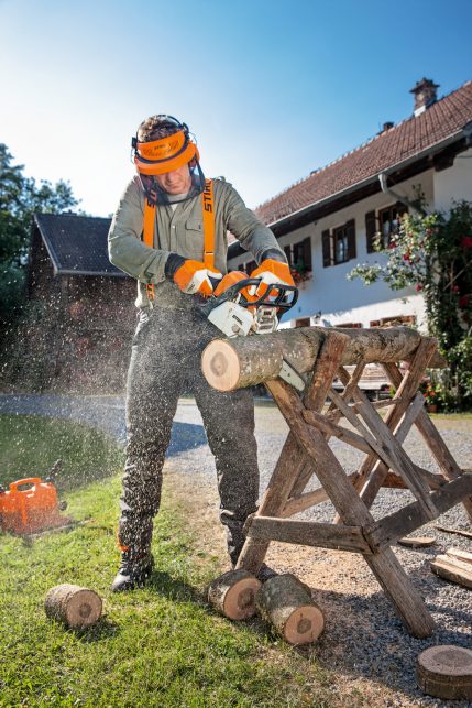 Delo z zmogljivimi napravami razveseljuje in omogoča, da pri tem prerastete samega sebe. Pri tem je dobro, če se lahko zanesete na učinkovita in varna zaščitna oblačila. Pri delu z motorno žago vedno nosite osebno zaščitno opremo. Sem spadajo npr. čelada, hlače z zaščito pred rezi, zaščitna obutev ipd. Več podrobnosti preberite v navodilih za uporabo kupljenega izdelka. Pred prvo uporabo naprave se dobro seznanite z njenim delovanjem, poleg tega se pred vsakim delom prepričajte, da je naprava v brezhibnem stanju. Specializirani trgovec STIHL bo napravo za vas pripravil na prvo uporabo in vam svetoval glede zaščitnih oblačil, krojev in konfekcijskih številk, pri tem pa boste oblačila lahko v miru pomerili. Zapomnite si, da osebna zaščitna oprema ne more nadomestiti varne delovne tehnike.
