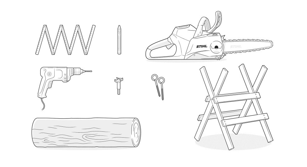 Za lepo valilnico potrebujete samo kos debla, motorno žago STIHL, vrtalnik, kozo za žaganje in nekaj ur časa. Če ste se odločili za določeno vrsto ptice, morate upoštevati le še velikost vhodne odprtine, da boste izdelali idealno zavetišče za ptice, kot so npr. plavčki ali velike sinice.