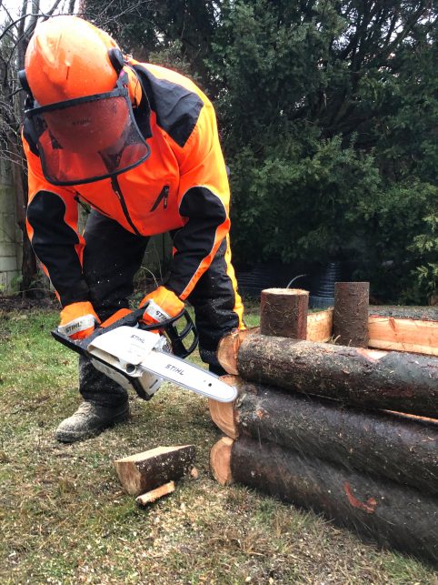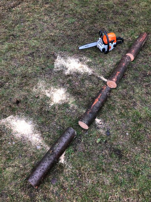 Nasvet strokovnjaka STIHL: seštejte premere že razpolovljenih hlodov. Vsota je višina vaše visoke grede in s tem tudi dolžina kotnih količkov.