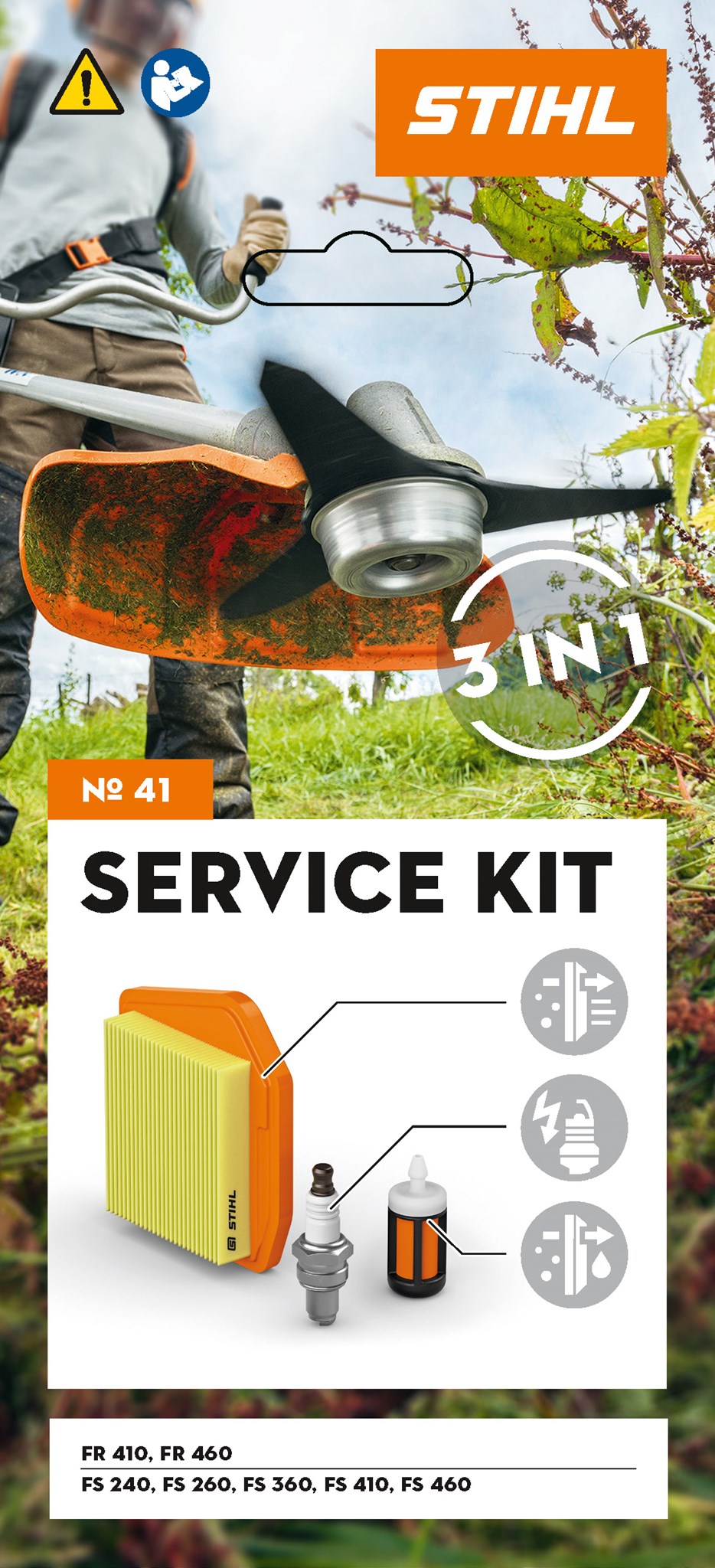 S servisnim setom za različne bencinske motorne naprave STIHL lahko sami izvedete enostavna vzdrževalna dela na vaši napravi. To proaktivno in redno standardno vzdrževanje, kot je zamenjava filtrov za zrak in gorivo ter svečke, poveča življenjsko dobo vaše naprave. Na ta način sami pomagate zagotoviti, da so deli stroja zaščiteni pred umazanijo in poškodbami ter da motor vaše naprave vedno deluje zanesljivo in z optimalno zmogljivostjo.