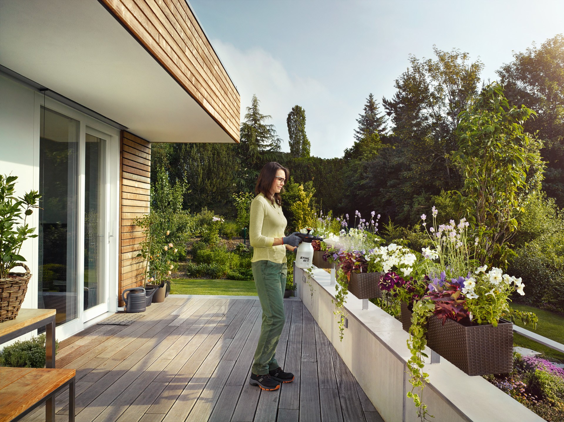 Ročna škropilnica z nastavljivo šobo za raznašanje sredstev za čiščenje in nego, na primer Superclean ali Varioclean. Prostornina 1,5 l, maksimalni tlak 3 bare, tesnila EPDM za čistila in topila pri pH vrednosti 7–14. Črpalka ima poseben zaščitni element, da se zagotovi njena dolga življenjska doba.