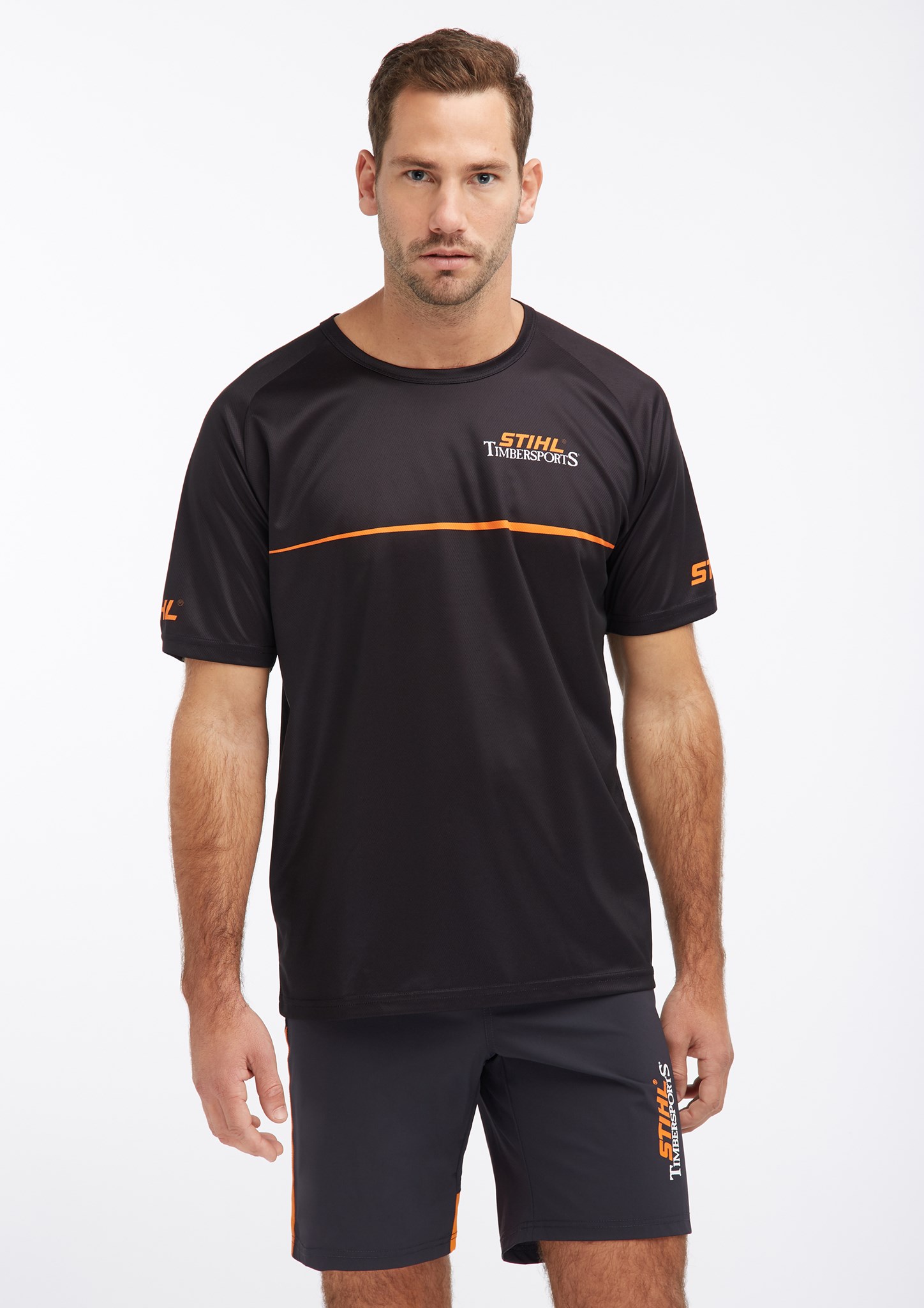 Funkcijska majica STIHL TIMBERSPORTS®, izdelana iz 100% poliestra z V-izrezom, je narejena za vse, ki ste predani športu. Logotip STIHL TIMBERSPORTS® na sprednji in zadnji strani, logotipi STIHL na rokavih in velike prekrižane sekire na hrbtni strani dajo res športni videz.