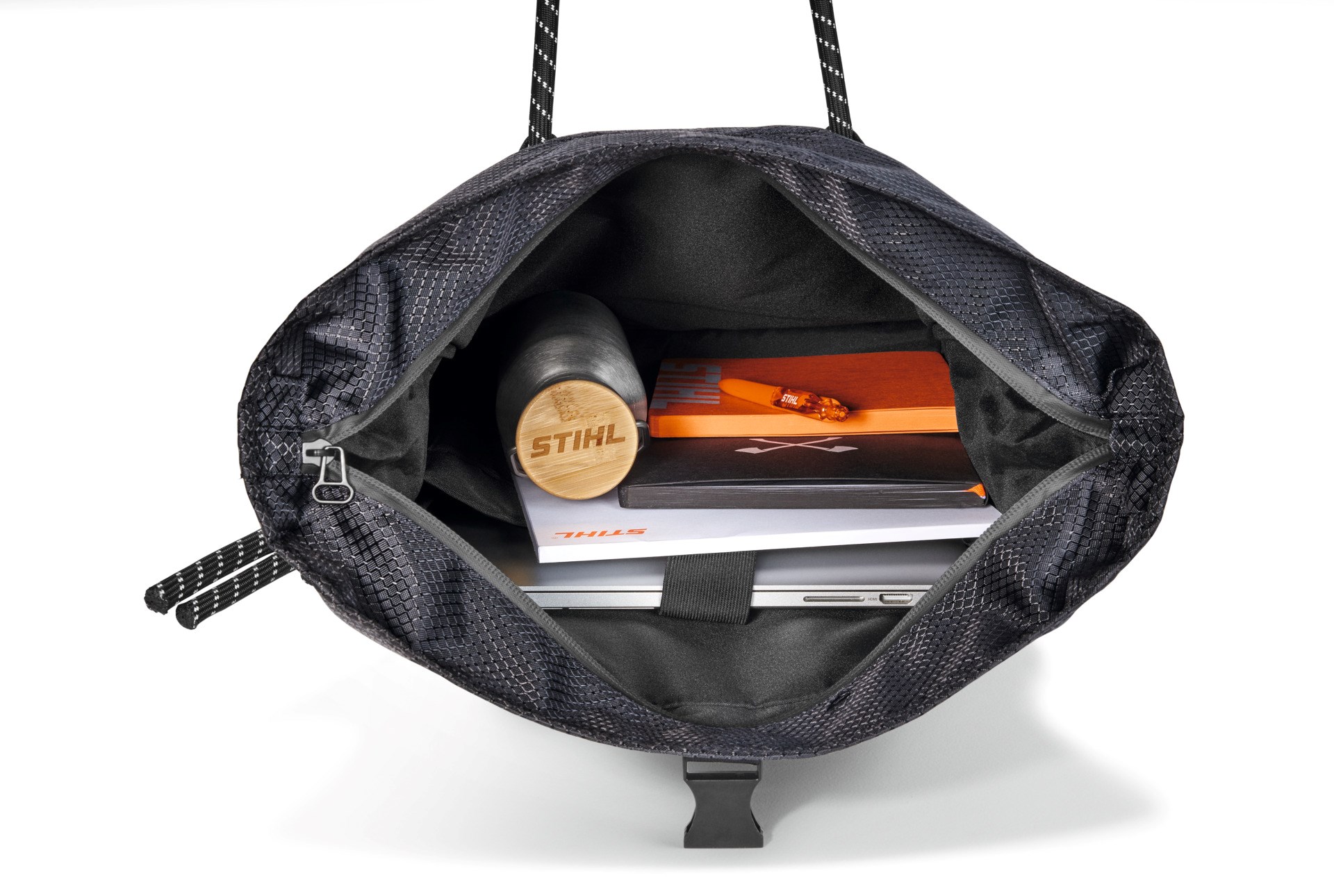 Nosilna torba STIHL za sodobne mestne prebivalce! Elegantna, mladostna torba za prenašanje dokumentov, oblazinjen notranji žep za prenosni računalnik itd. Manjše predmete lahko shranite v zunanji žep. S 30 × 50 × 20 cm je torba ravno pravšnje velikosti za študentski vsakdanjik. Torba je vodoodbojna.