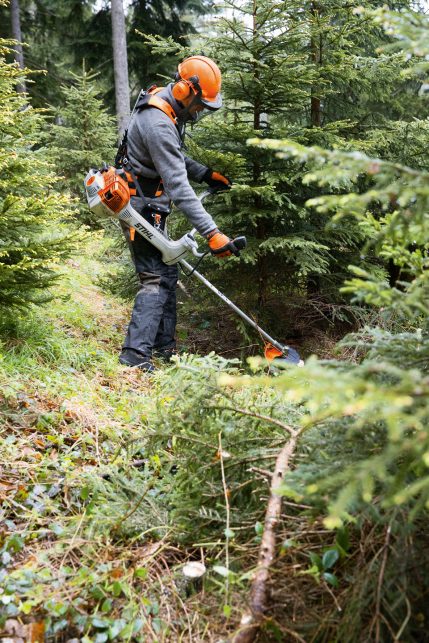 Delo z zmogljivimi napravami razveseljuje in omogoča, da pri tem prerastete samega sebe. Pri tem je dobro, če se lahko zanesete na učinkovita in varna zaščitna oblačila. Pri delu z motorno koso vedno nosite osebno zaščitno opremo. Sem spadajo npr. zaščitna očala, zaščita obraza, zaščitna obutev ipd. Podrobnosti najdete v navodilih za uporabo svojega izdelka (LINK SUPPORT). Pred prvo uporabo naprave se dobro seznanite z njenim delovanjem, poleg tega se pred vsakim delom prepričajte, da je naprava v brezhibnem stanju. Specializirani trgovec STIHL bo napravo za vas pripravil na prvo uporabo in vam svetoval glede zaščitnih oblačil, krojev in konfekcijskih številk, pri tem pa boste oblačila lahko v miru pomerili. Zapomnite si, da osebna zaščitna oprema ne more nadomestiti varne delovne tehnike.
