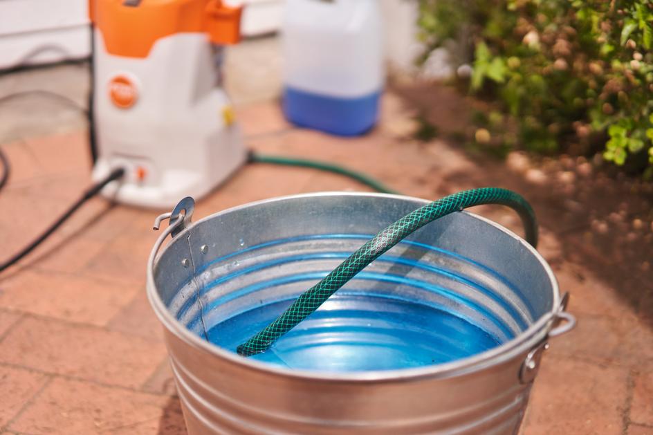 Ko boste jeseni visokotlačni čistilnik zadnjič uporabili, ga morate tudi pravočasno izprazniti. V ta namen postopajte kot sledi: če želite iztočiti vodo takoj po uporabi visokotlačnega čistilnika, najprej izklopite napravo, izklopite električno napajanje in zaprite dovod vode.