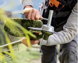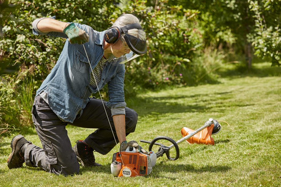Košnja z motorno koso je učinkovita in hitra. Vendar poskrbite za naslednje: prebrali ste navodila za uporabo; delovna okolica je zaščitena in preverjena, oblečena imate ustrezna zaščitna oblačila. Nato lahko začnete delati z motorno koso.