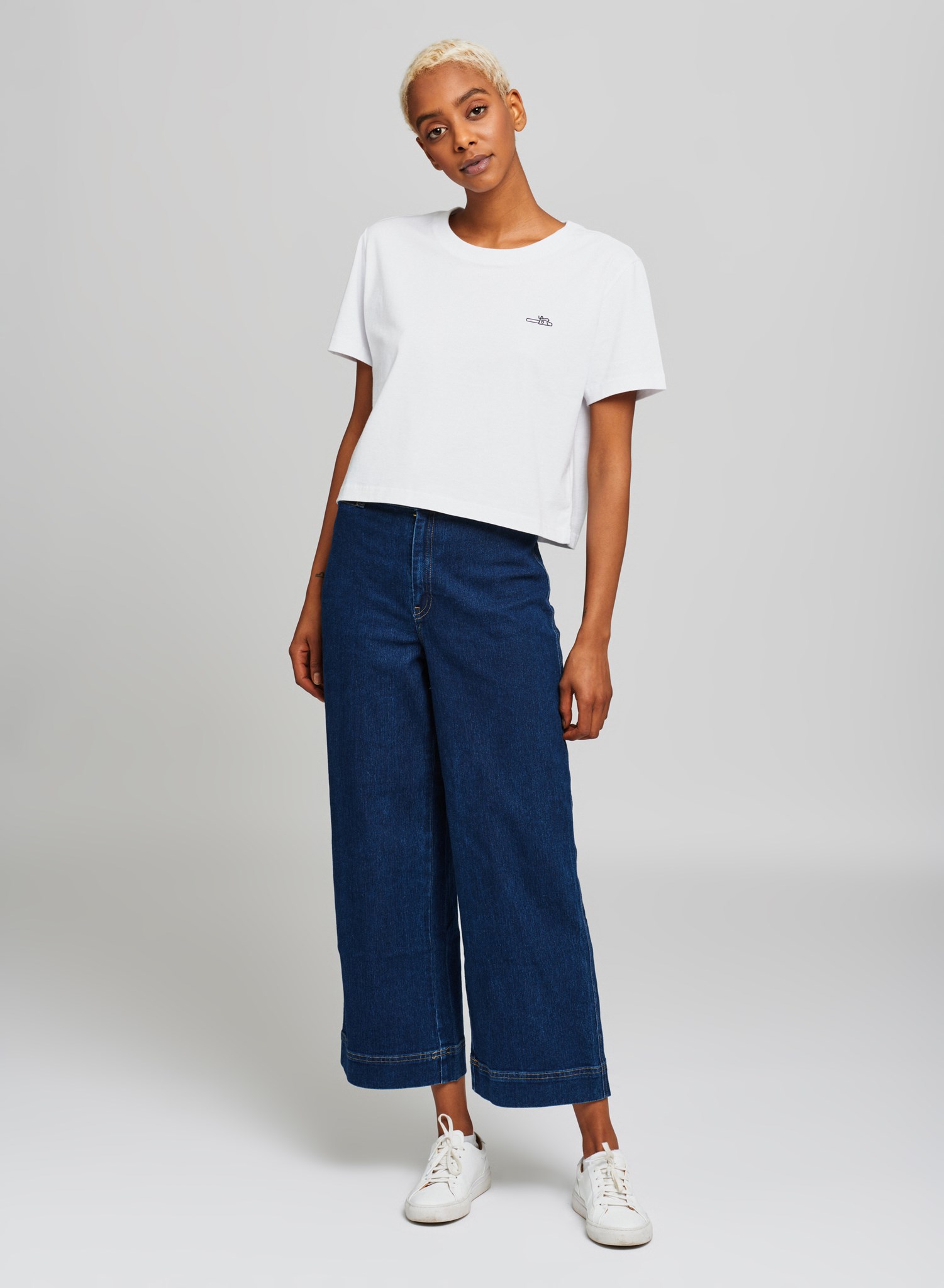 Trendovska majica nekoliko širšega in krajšega prirezanega kroja z okroglim ovratnikom. Naša značilna ikona motorne žage na prsih kot rahlo dvignjen tisk v komplementarni črni barvi. Majhen našitek z logotipom na desnem zadnjem robu.